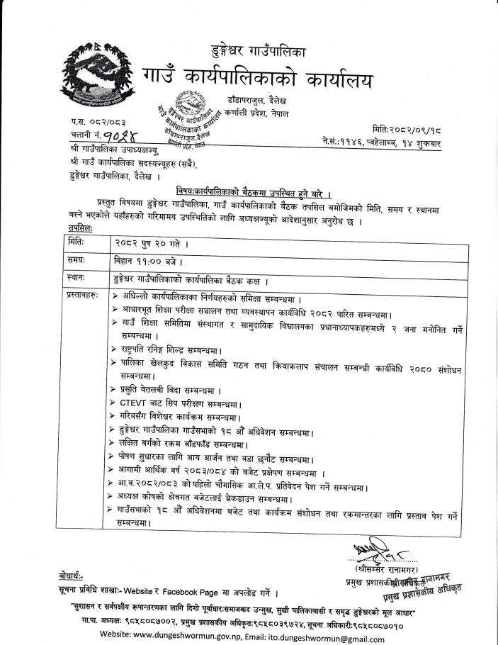 » कार्यपालिकाकाे बैठकमा उपस्थित हुने बारे ।