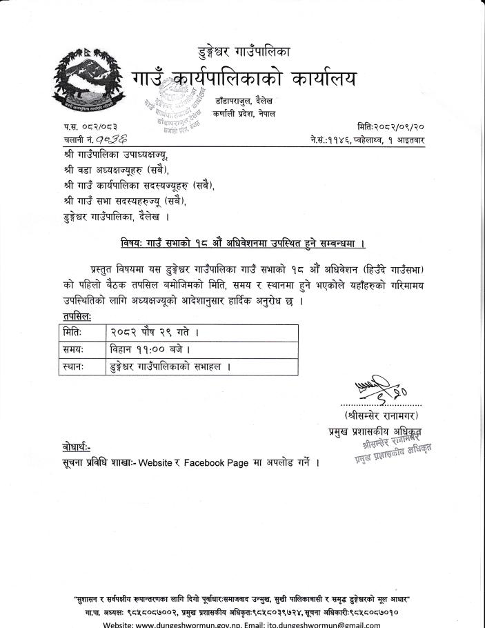 गाउँ सभाको १८ औँ अधिवेशनमा उपस्थित हुने सम्बन्धमा ।