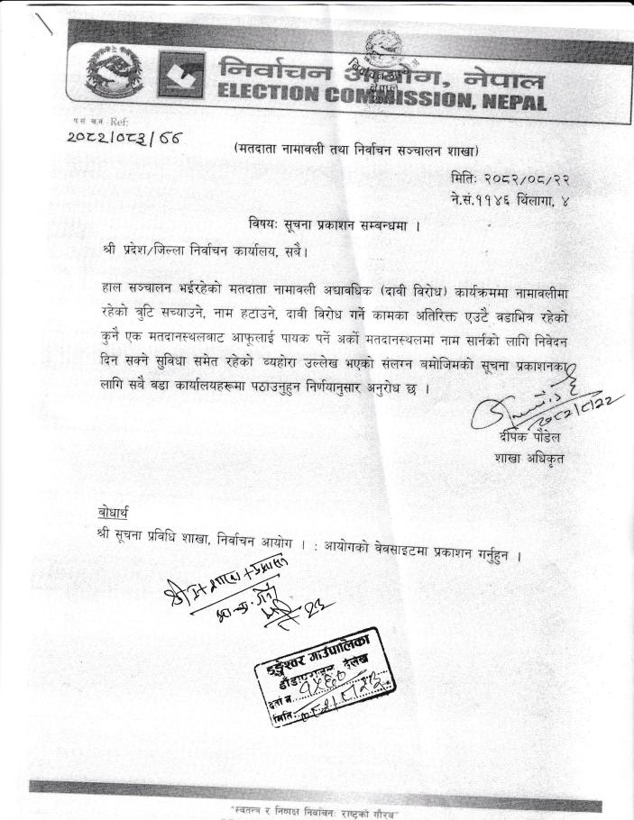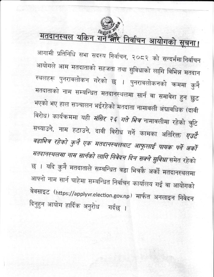 मतदानस्थल यकिन गर्ने बारे निर्वाचन आयोगको सूचना ।