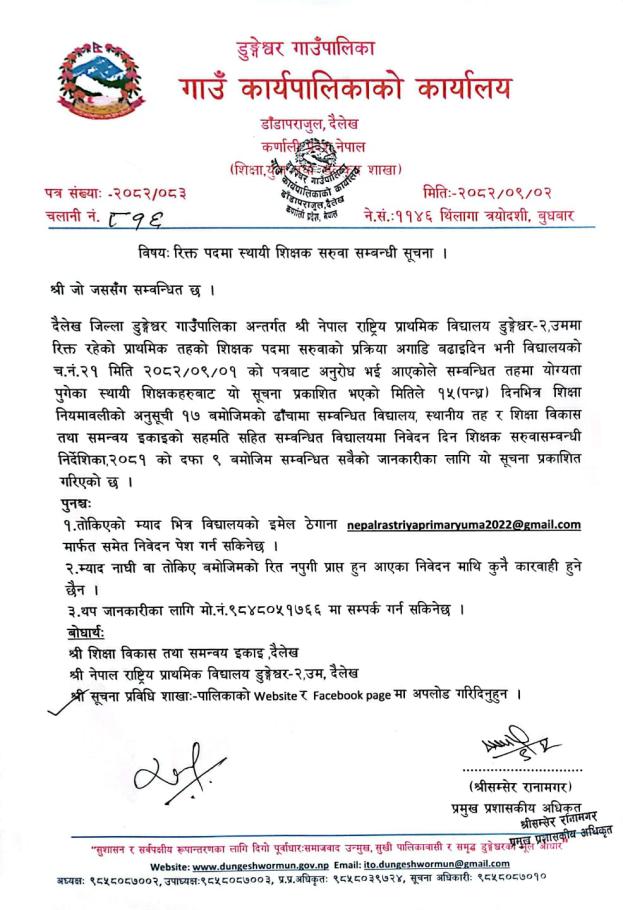रिक्त पदमा स्थायी शिक्षक सरुवा सम्बन्धी सूचना ।