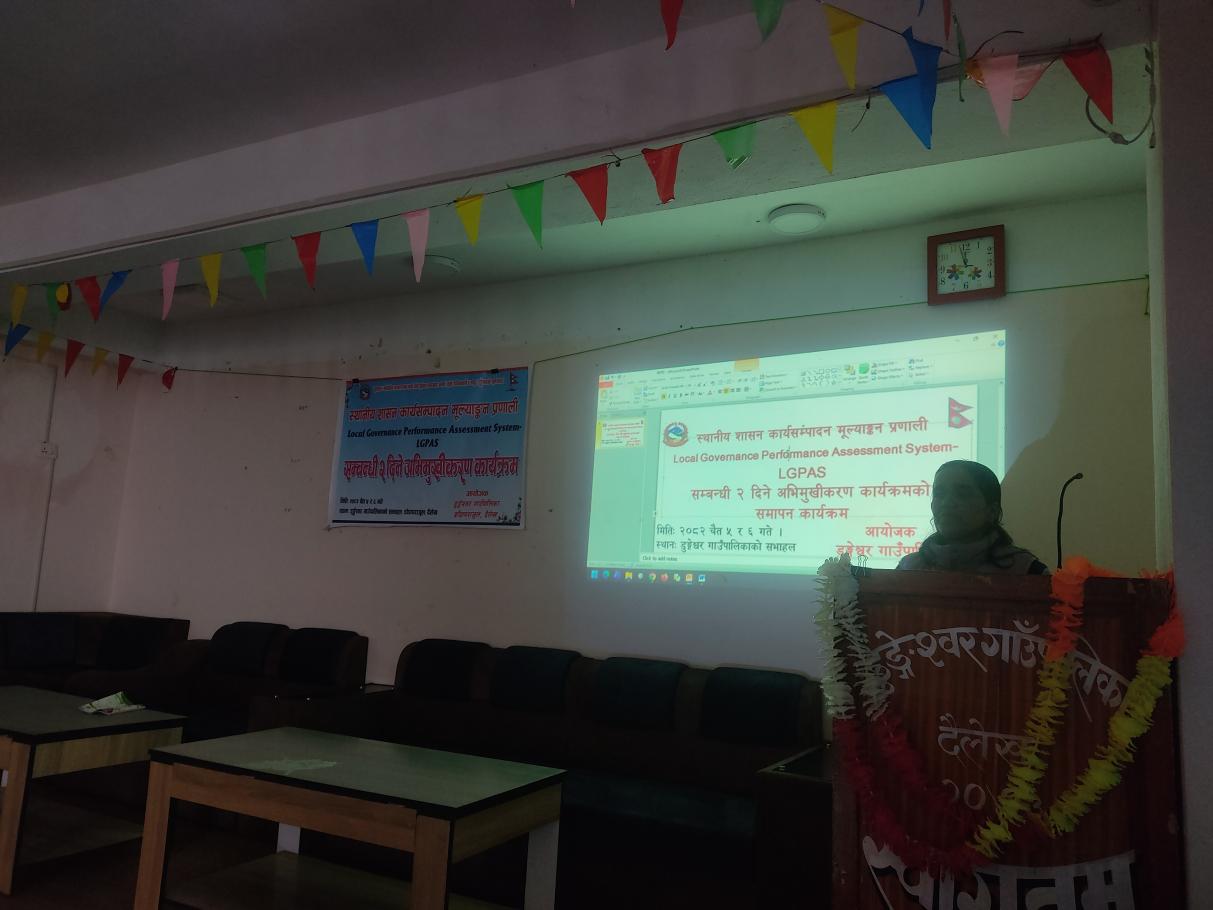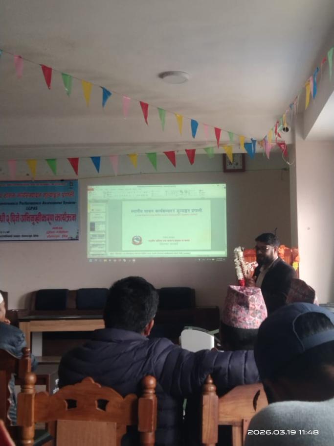 स्थानीय शासन कार्यसम्पादन मूल्याङ्कन प्रणाली (Local Governance Performance Assessment System: LGPAS) सम्बन्धी २ दिने अभिमुखीकरण कार्यक्रमका केही झलकहरू।
