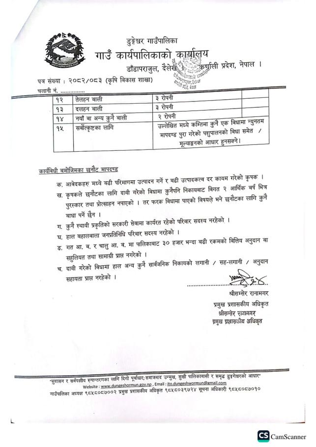 उत्पादनमा आधारित पुरस्कार तथा प्रोत्साहन कार्यक्रमका लागि आवेदन पेश गर्ने सम्बन्धि दोश्रो पटक प्रकाशित १५ दिने सूचना !