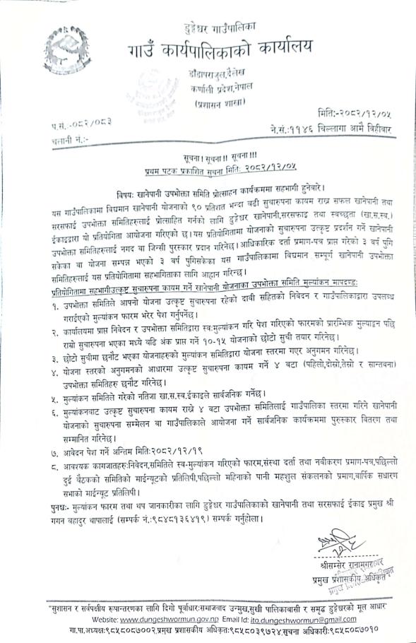 » खानेपानी उपभोक्ता समिति प्राेत्साहन कार्यक्रममा सहभागी हुने सम्बन्धी सूचना ।