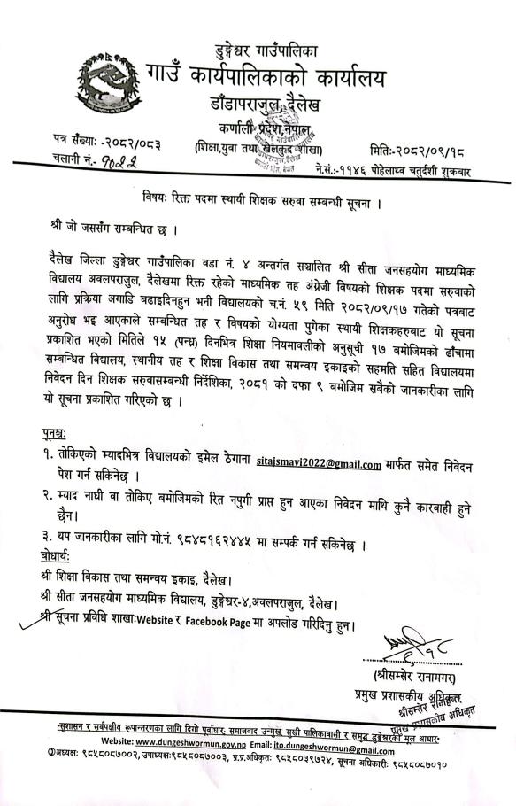 रिक्त पदमा स्थायी शिक्षक सरूवा सम्बन्धी सूचना ।