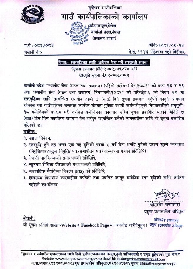 स्तरवृद्धिका लागि आवेदन पेश गर्ने सम्बन्धी सूचना !