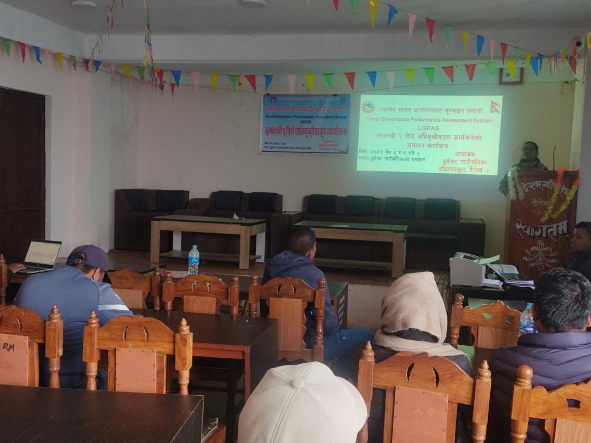 स्थानीय शासन कार्यसम्पादन मूल्याङ्कन प्रणाली (Local Governance Performance Assessment System: LGPAS) सम्बन्धी २ दिने अभिमुखीकरण कार्यक्रमका केही झलकहरू।